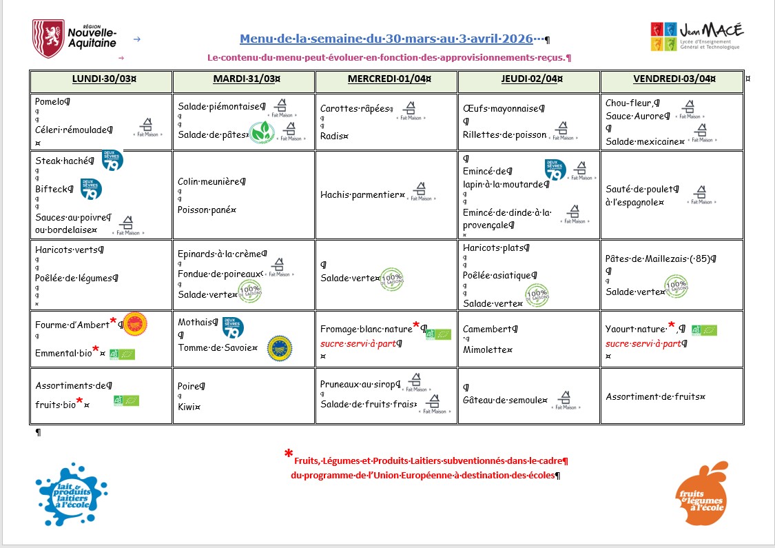 Menu du 30/03 au 03/04